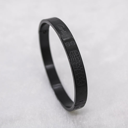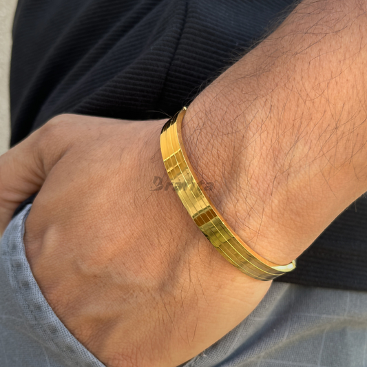 Premium Om Loose Gold Bracelet For Men With Black Line Pattern (8 Inch)