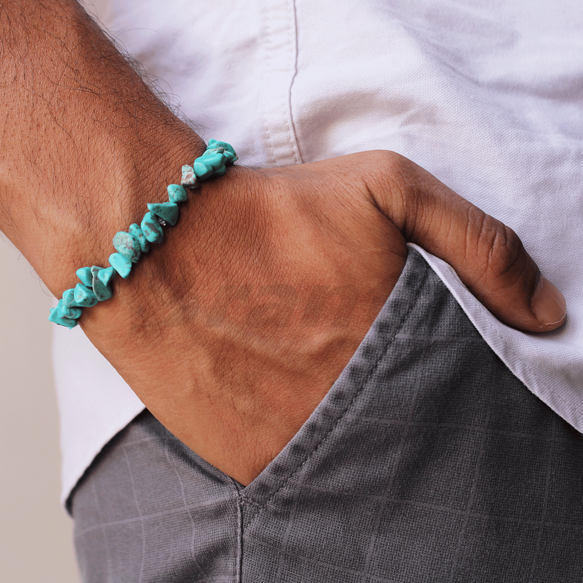 Blue & Green Howlite Chips Crystals Bracelet For MenMade from a High-Quality Stone with a luxury look, perfect for any occasion, it’s easy to take on and take off.