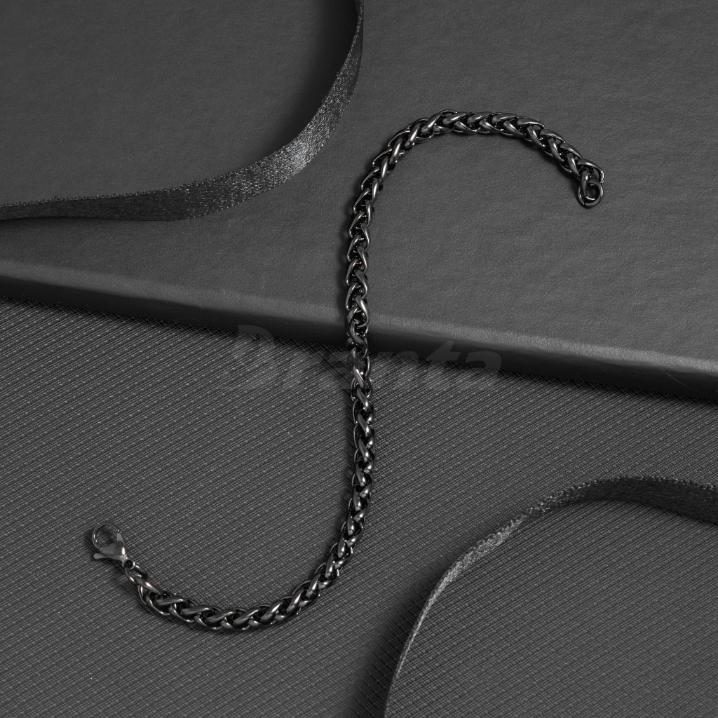 Black Round Wheat Stainless Steel Bracelet For Men (8.5 Inch)